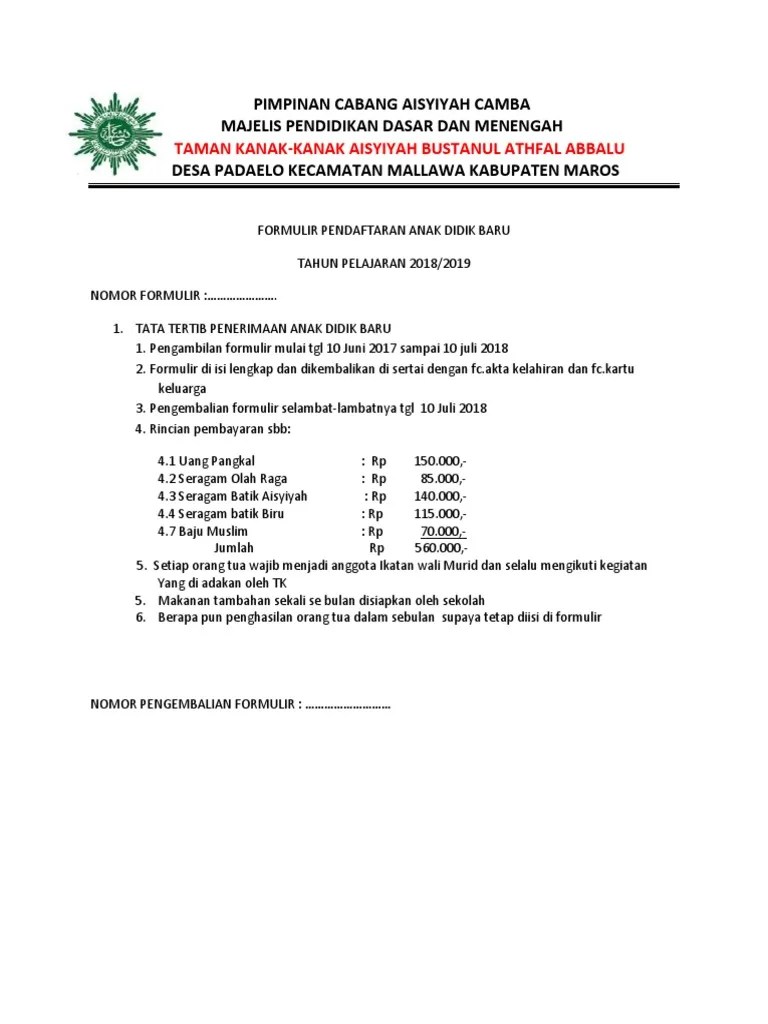 Contoh Formulir Pendaftaran Siswa Baru Tk - Formulir Pendaftaran Siswa Baru Mi Tanwirul Islam 02 : Sanksi berupa pembatalan sebagai calon peserta didik tk aisyiyah karangmalang.